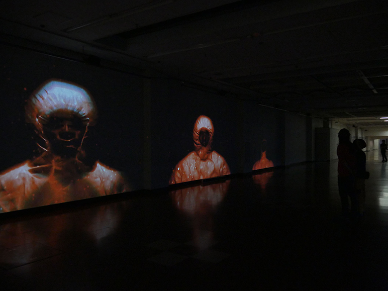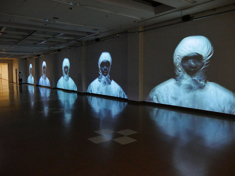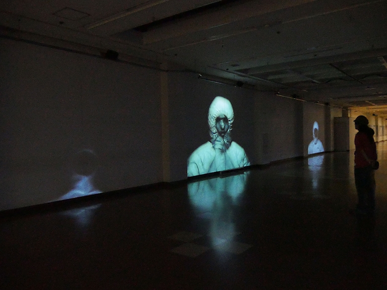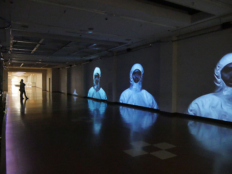 5人の男が暗闇の中から起き上がっては語りかける。風の音が大きくて、彼らが何を訴えているのかはわからない。宇宙のような、洞窟のような遠い場所から、宇宙服のような防護服のような格好をした5人が語りかける。