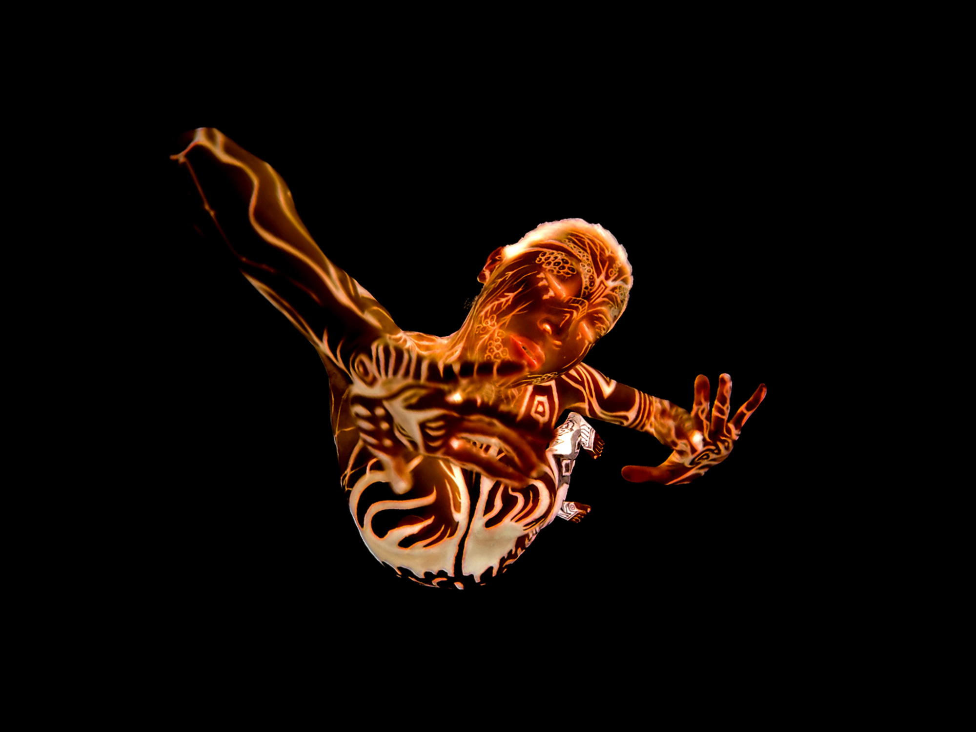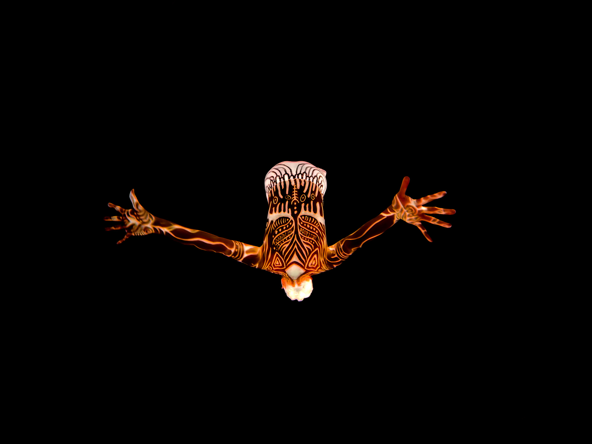 人間を指して、本能が壊れた生物ということがあります。故に我々は創造力を獲得したのですが、この本能という野生に創造を通して接近したいという欲求があります。今回、その可能性を私は踊りの中に探し、それらをプラネタリウムという異界の暗闇に浮かぶ幻覚のような身体に託しました。それは、古代人が洞窟の奥深くで感覚を尖がらせ、目に見えない世界との接触のうちにイメージを求めた衝動の延長を想定するものであり、野生に対する欠乏感のもと、不完全な創造によってその情熱を呼び覚まそうというものです。