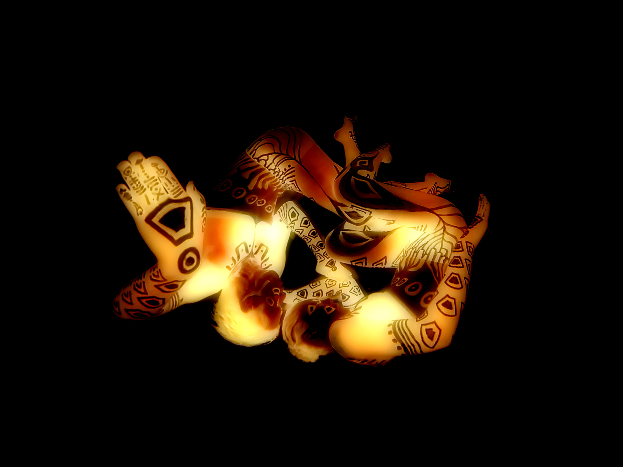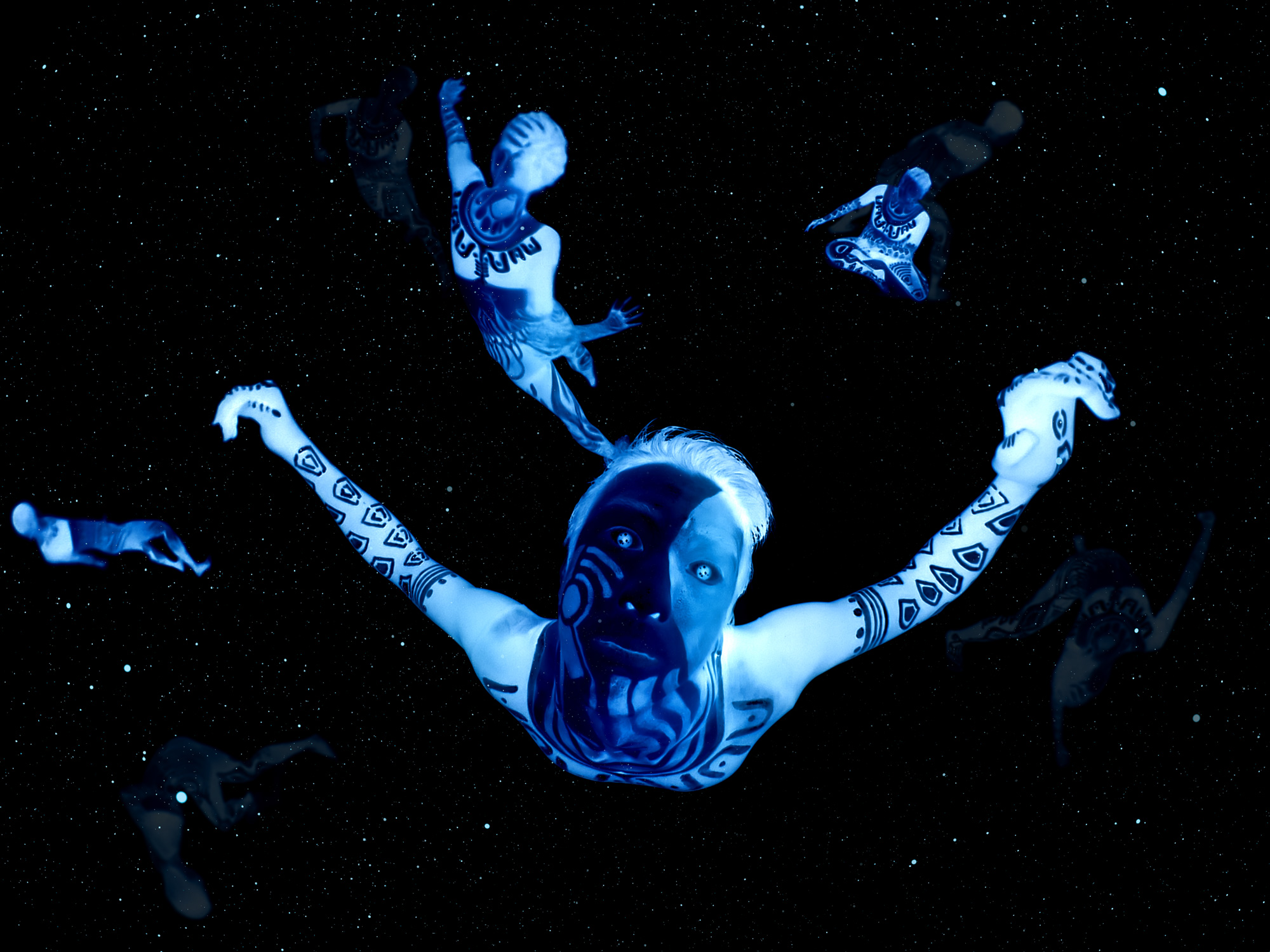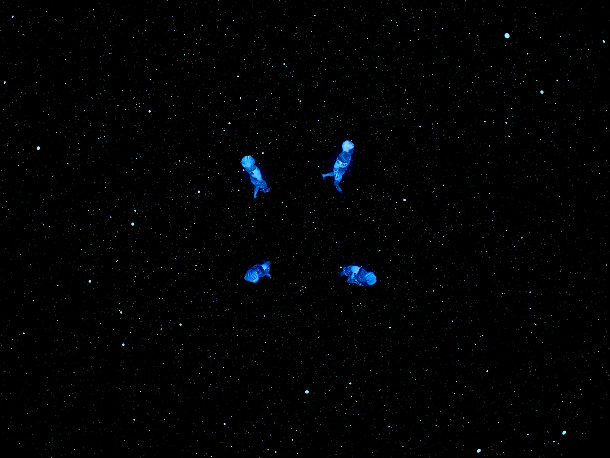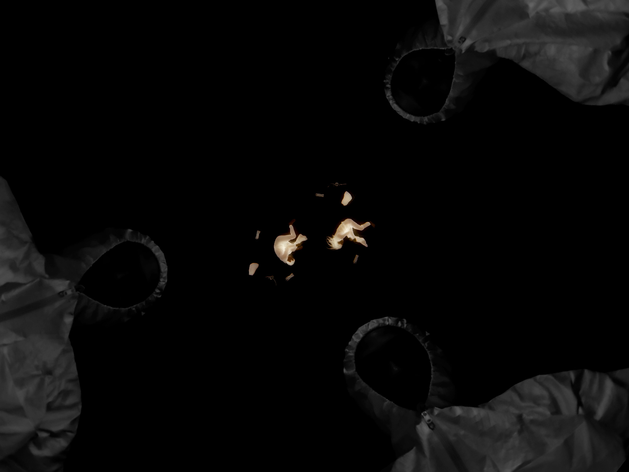 I portrayed them in dancers and body silhouettes floating in the darkness.