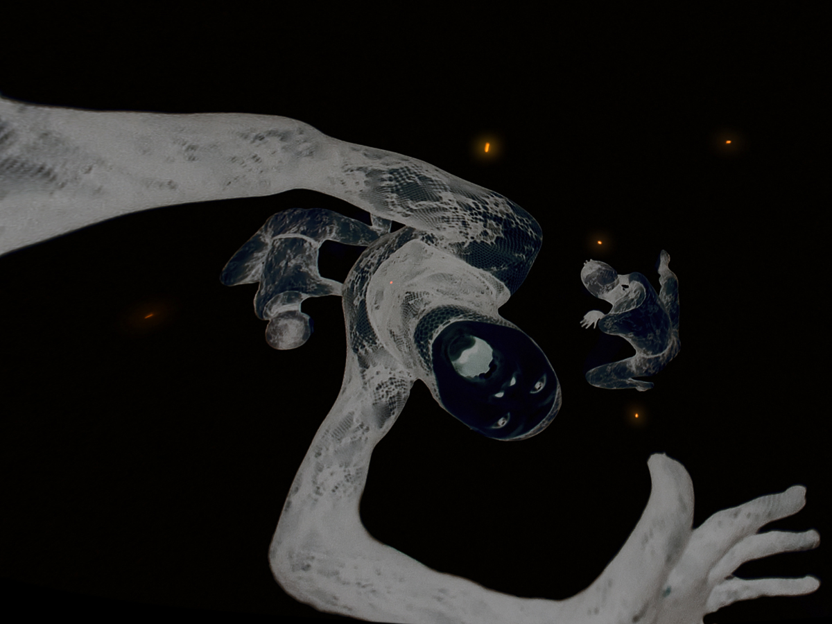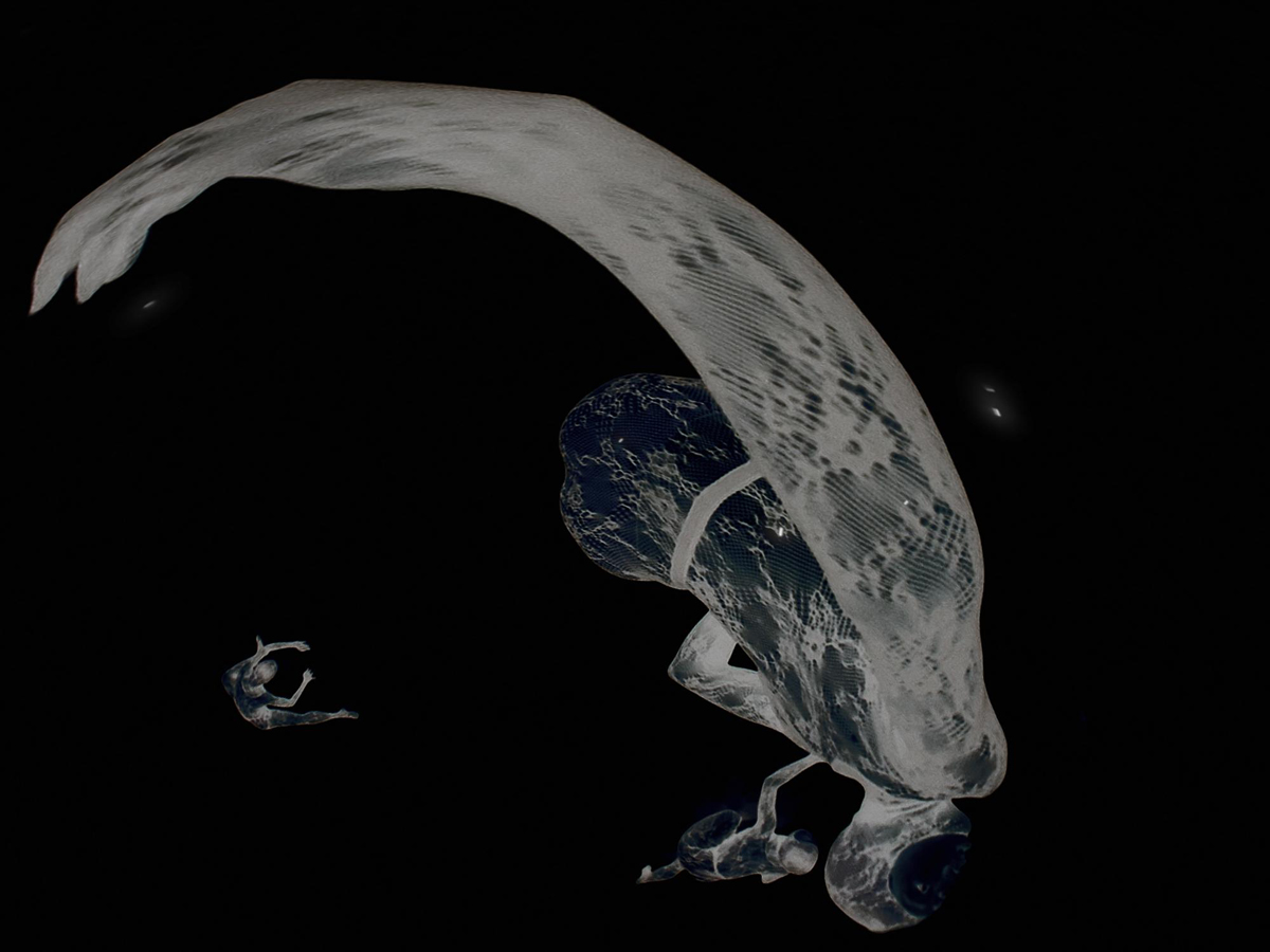 生身の身体が"生"なら、映像化された身体は"死"です。"Fermentation"のダンサーは死後の創造性を育む媒体となります。それは陽光に紛れるものではなく、暗闇の中に潜むものです。ダンサーの動きが空間を照らす一方で、闇はどんどん深みを増します。この作品は、かつて我々が信仰した世界を訪ねる試みです。