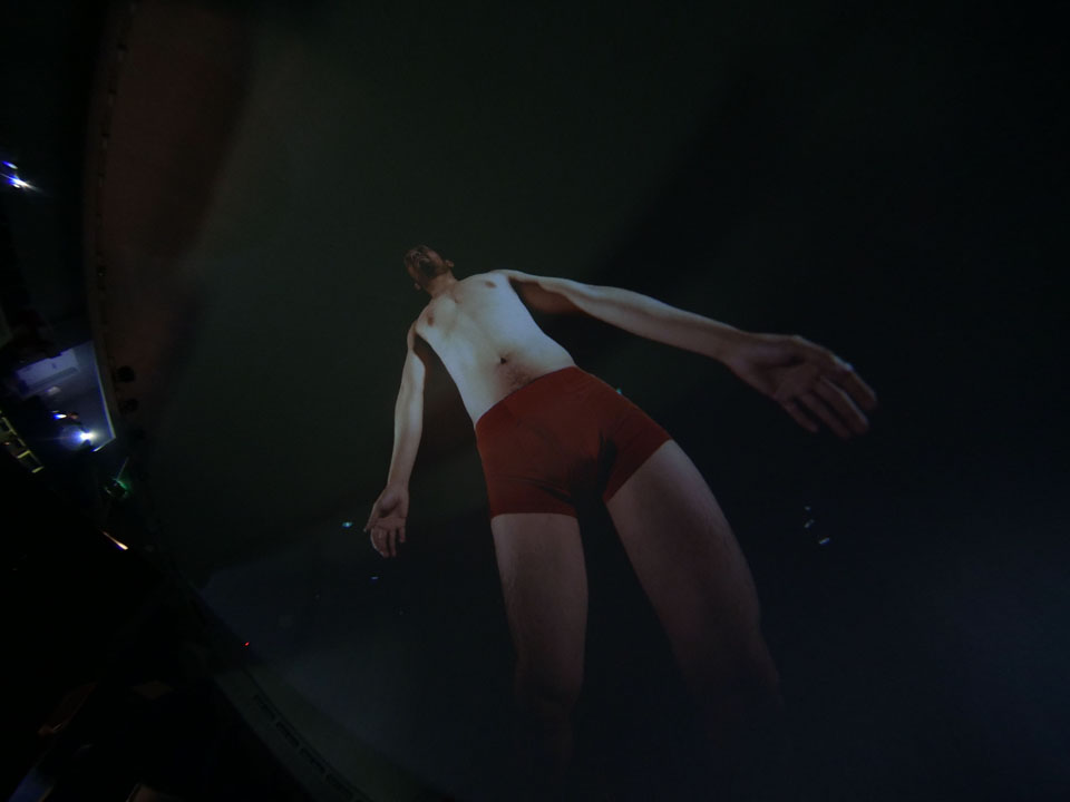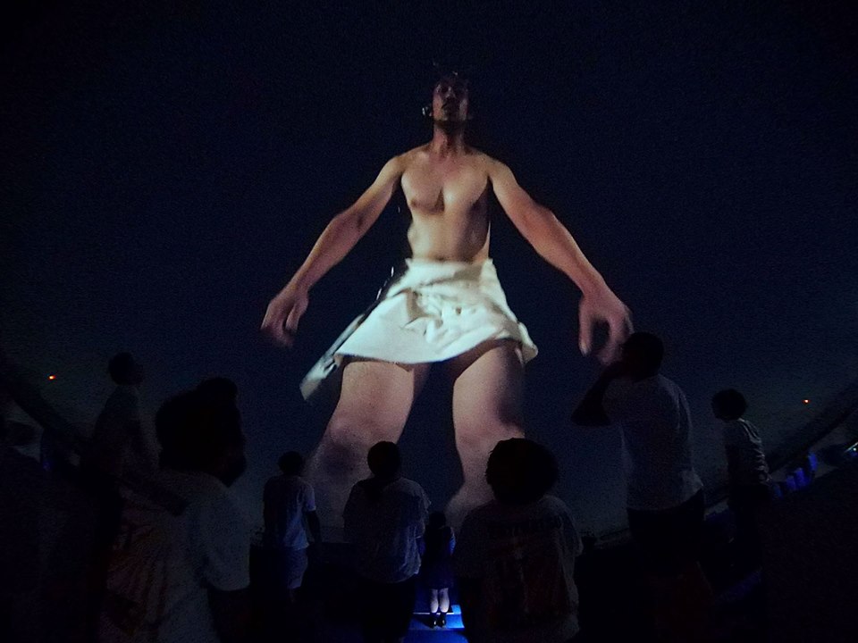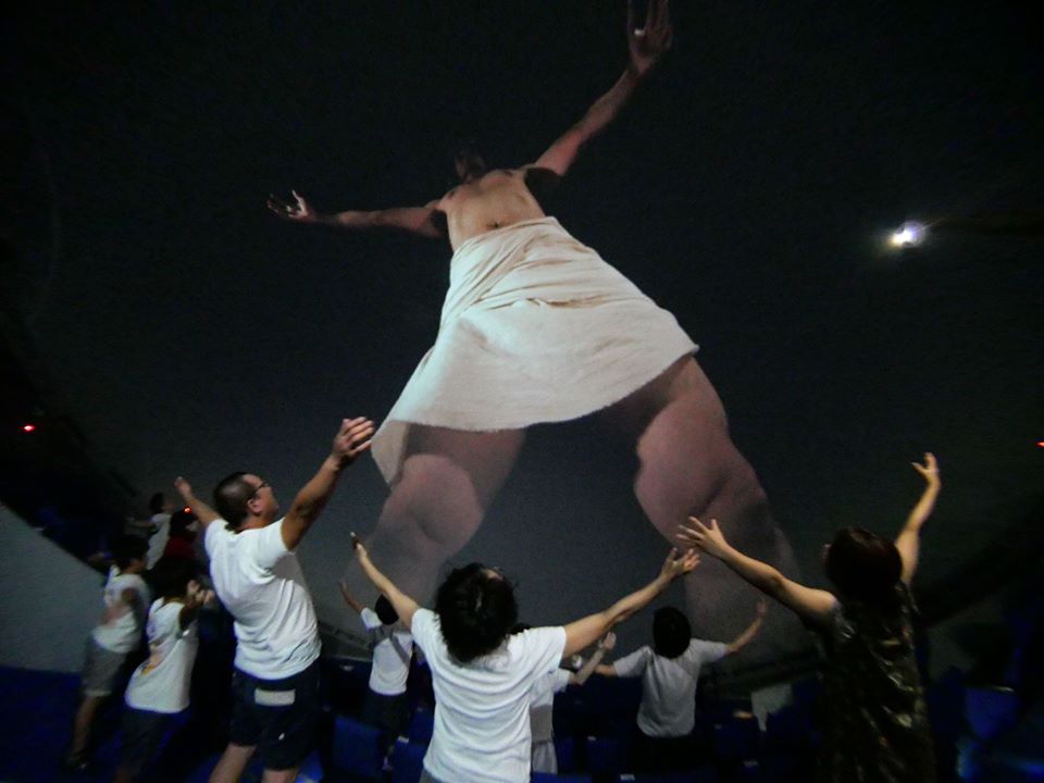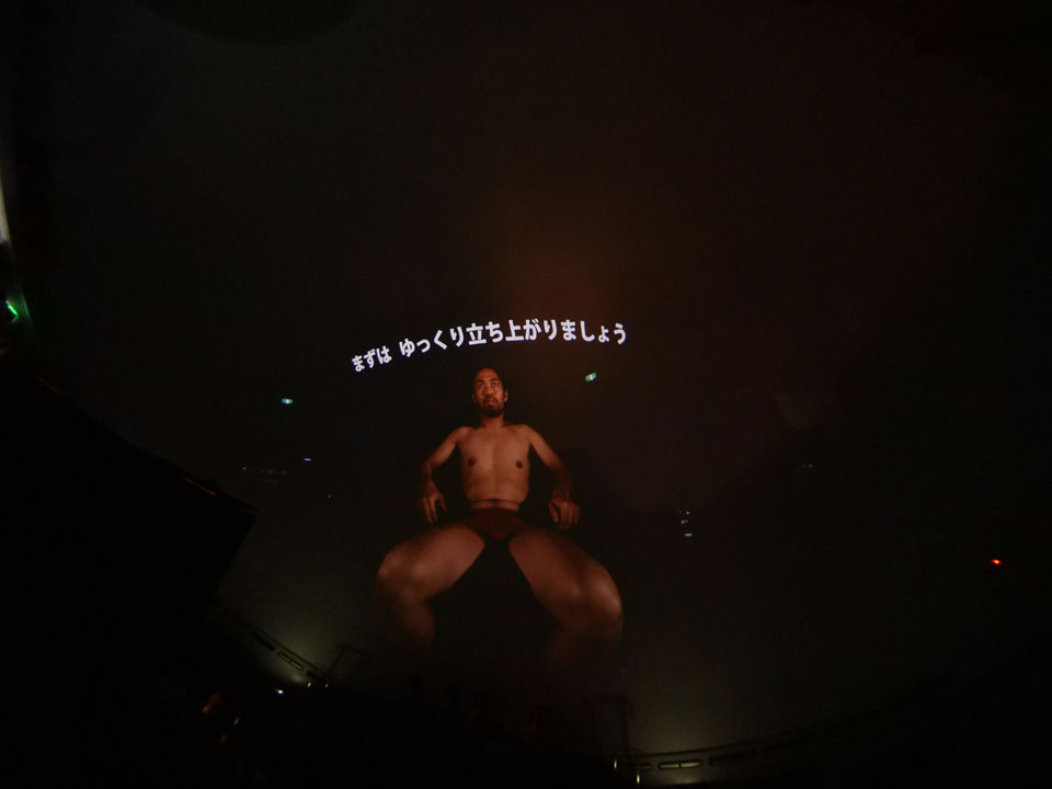 プラネタリウムの暗闇に赤パン一丁で寝ている巨人が現れる。目が覚めた巨人は客席に一緒にゆっくりと立ち上がるよう促す。そして観客は巨人の動きに合わせてスローテンポでラジオ体操を行う。ドーム映像の没入感から、あたかもそこに実在するかのように現れた身の丈をはるか超えるスケールの巨人。観客は巨人と一緒に体を動かすことで、まるで自分も巨人になったかのような身体の拡張を体感することができる。ギリシャ星からやってきたギリシャ星人バージョンもある。
